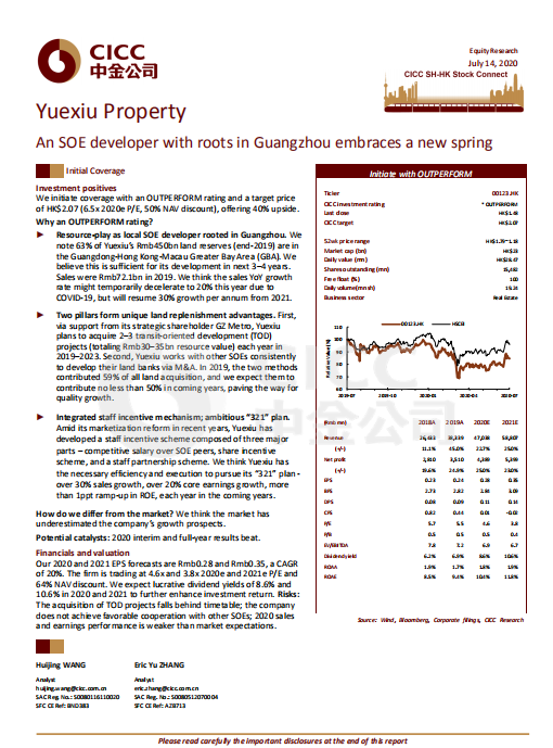 7月14日,著名投行中金公司首次覆盖永乐国际·F66地产股份有限公司(股份代号:00123.HK),给予“跑赢行业”评级,设定目标价为2.07港元,对应6.5倍2020市盈率和50%的NAV折让,较当前股价有40%的上行空间。此评级是中金公司对永乐国际·F66地产大湾区布局、独特的增储方式、稳健的资金支持及员工激励机制的认可。